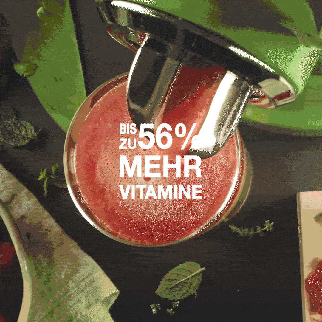 Mit seiner patentierten Technologie holt der VitaJuicer das Beste aus Obst und Gemüse raus und produziert deutlich mehr Saft und weniger Abfall.
